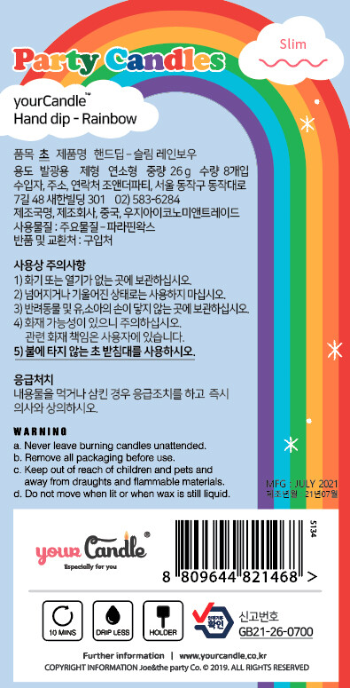 슬림 캔들선택하세요.레인보우 3팩/세트 (5% 할인)