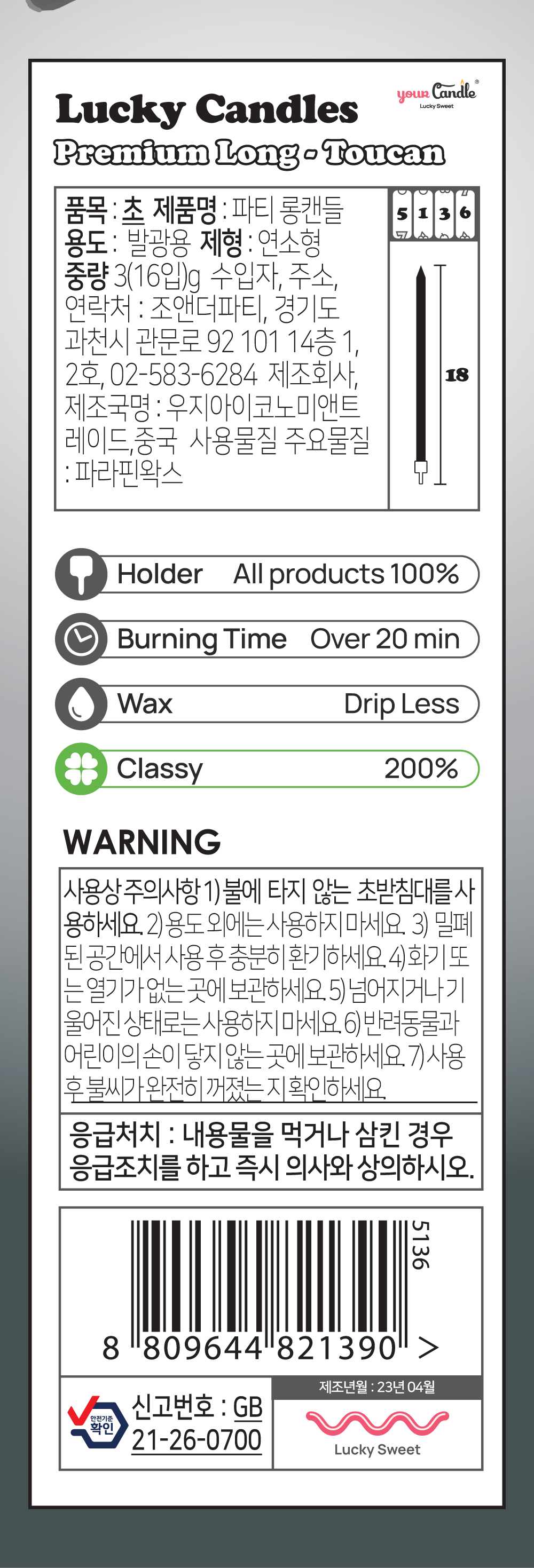 프리미엄 롱 캔들 - 메탈릭 토우칸