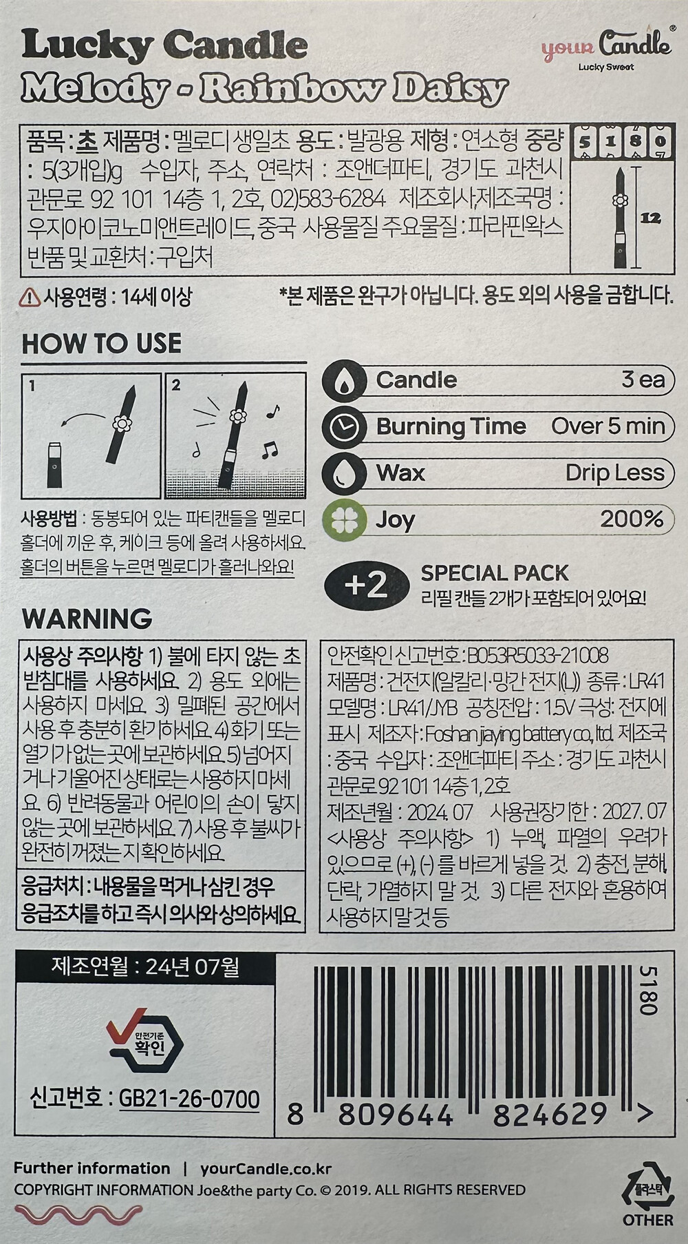 도매) 멜로디 생일초 - 레인보우 데이지