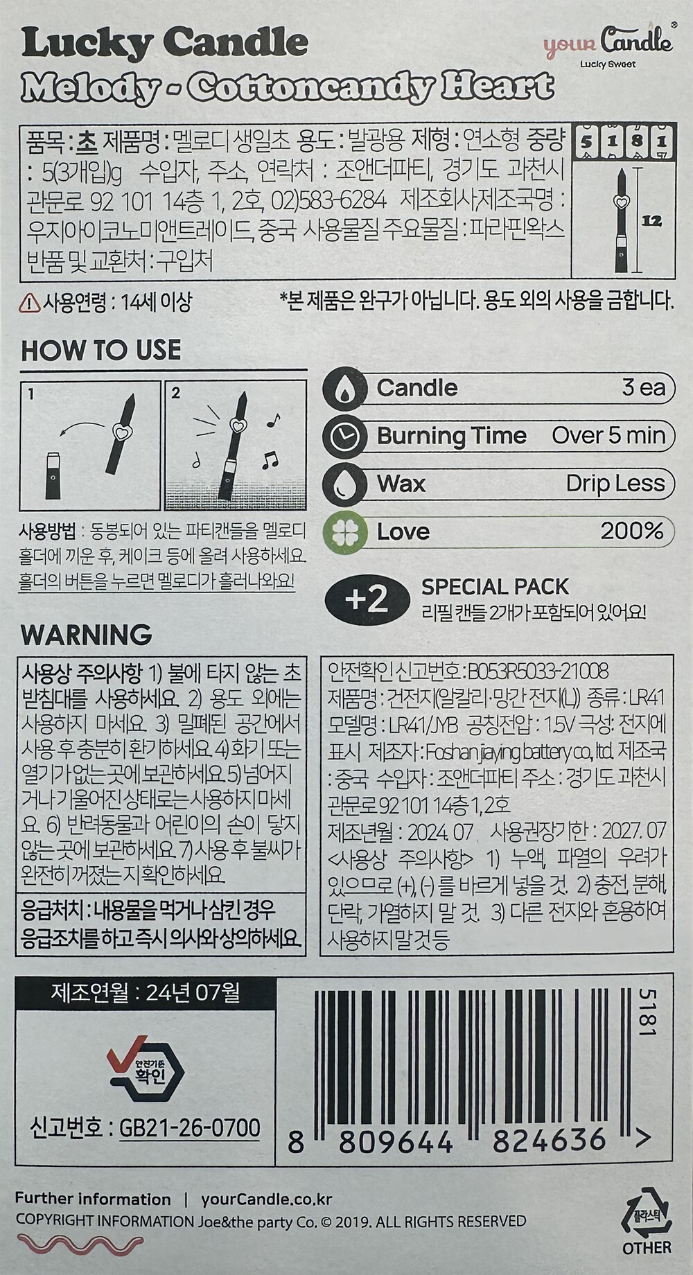 도매) 멜로디 생일초 - 코튼캔디 하트