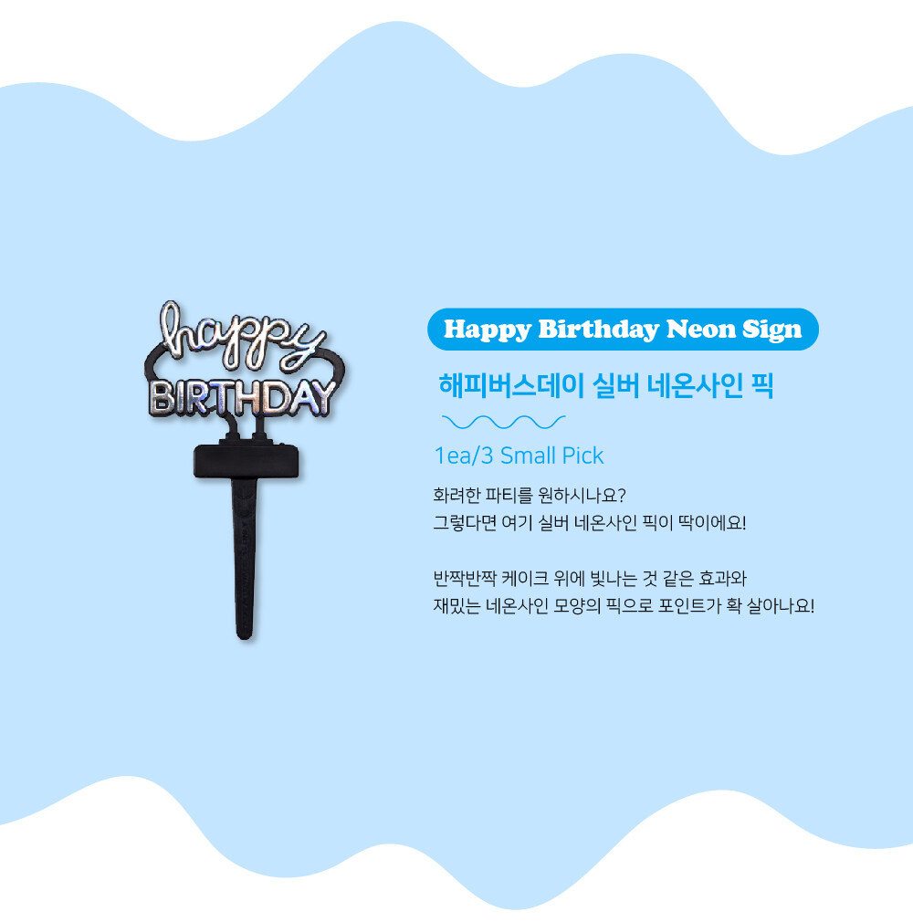 해피버스데이 실버 네온사인 데코픽 3세트 (-10% 할인)