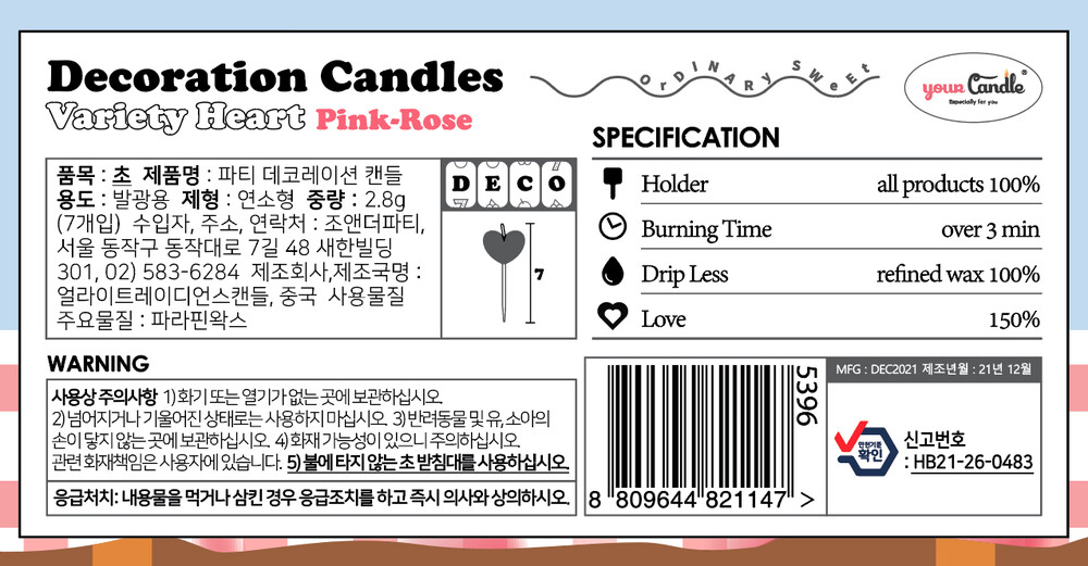 데코레이션 파티캔들 - 버라이어티 하트 핑크로즈