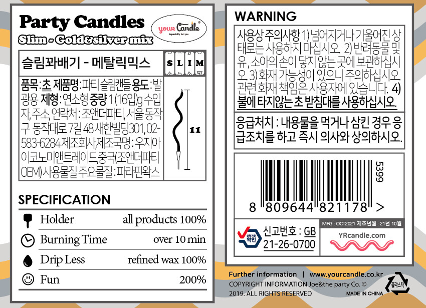 슬림 꽈배기 파티캔들 - 골드&실버