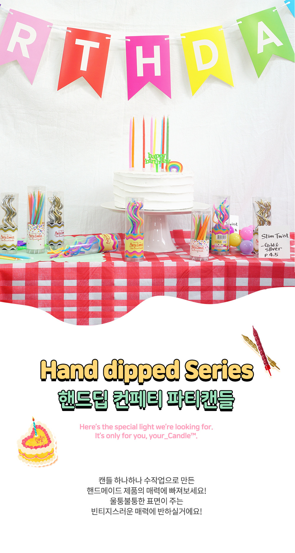 핸드딥 컨페티 파티캔들 - 롱 사이즈 파스텔