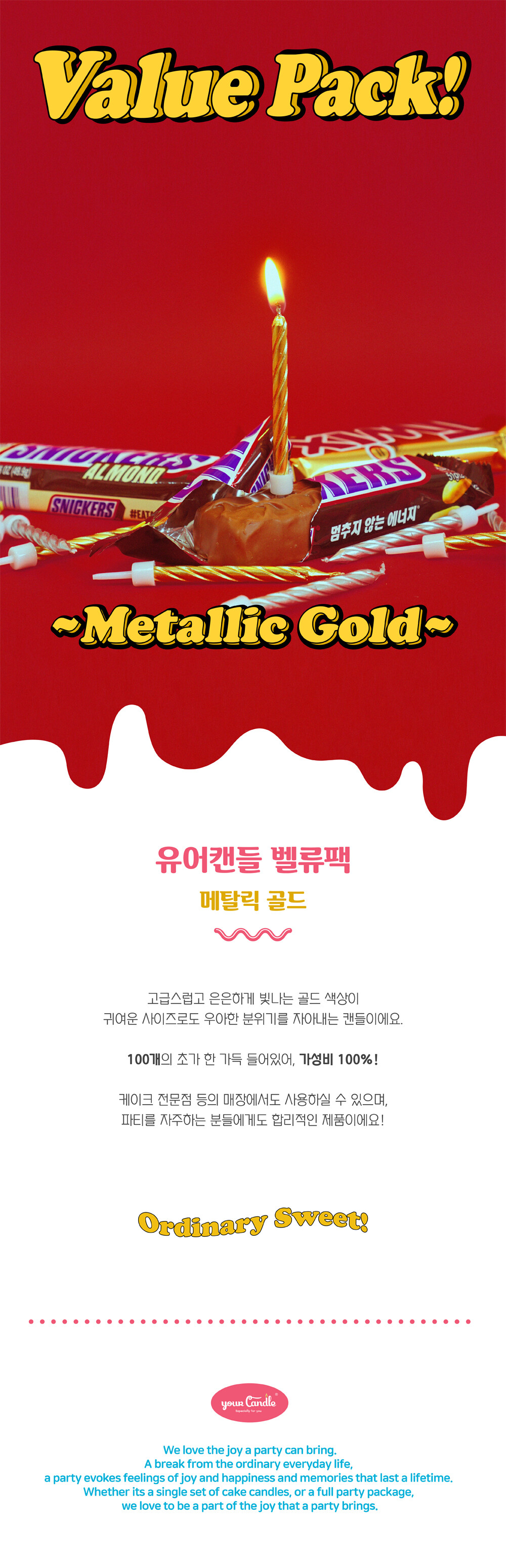 벨류팩선택하세요.메탈릭 골드 파티캔들 3팩/세트 (5% 할인)