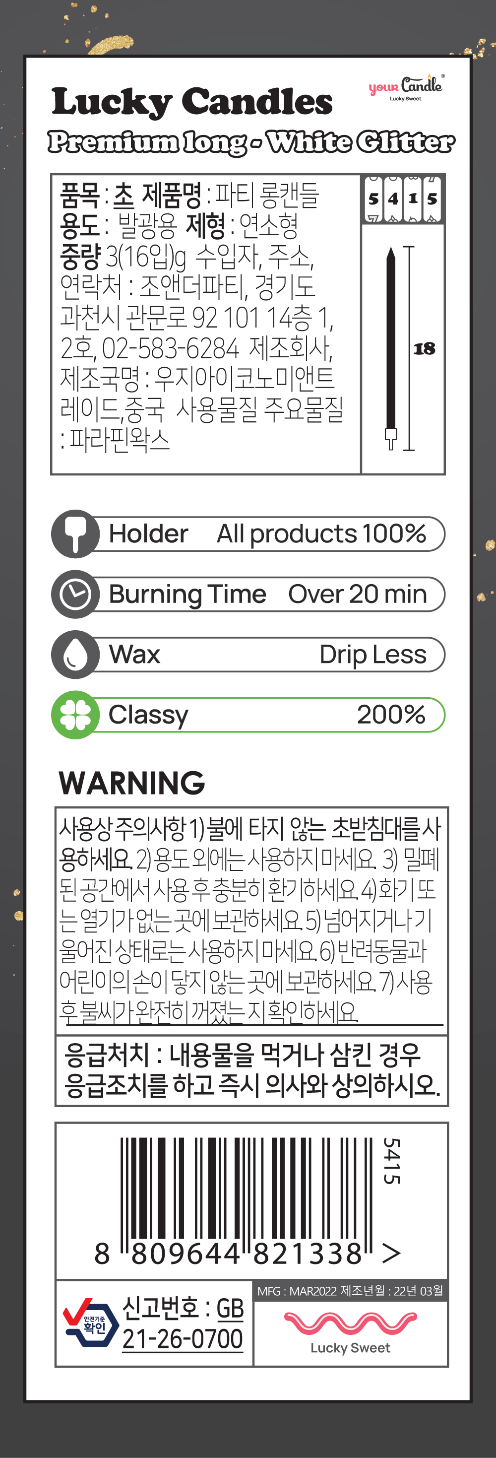 프리미엄 롱 캔들선택하세요.오리지널 글리터 골드 3팩/세트(5%할인)
