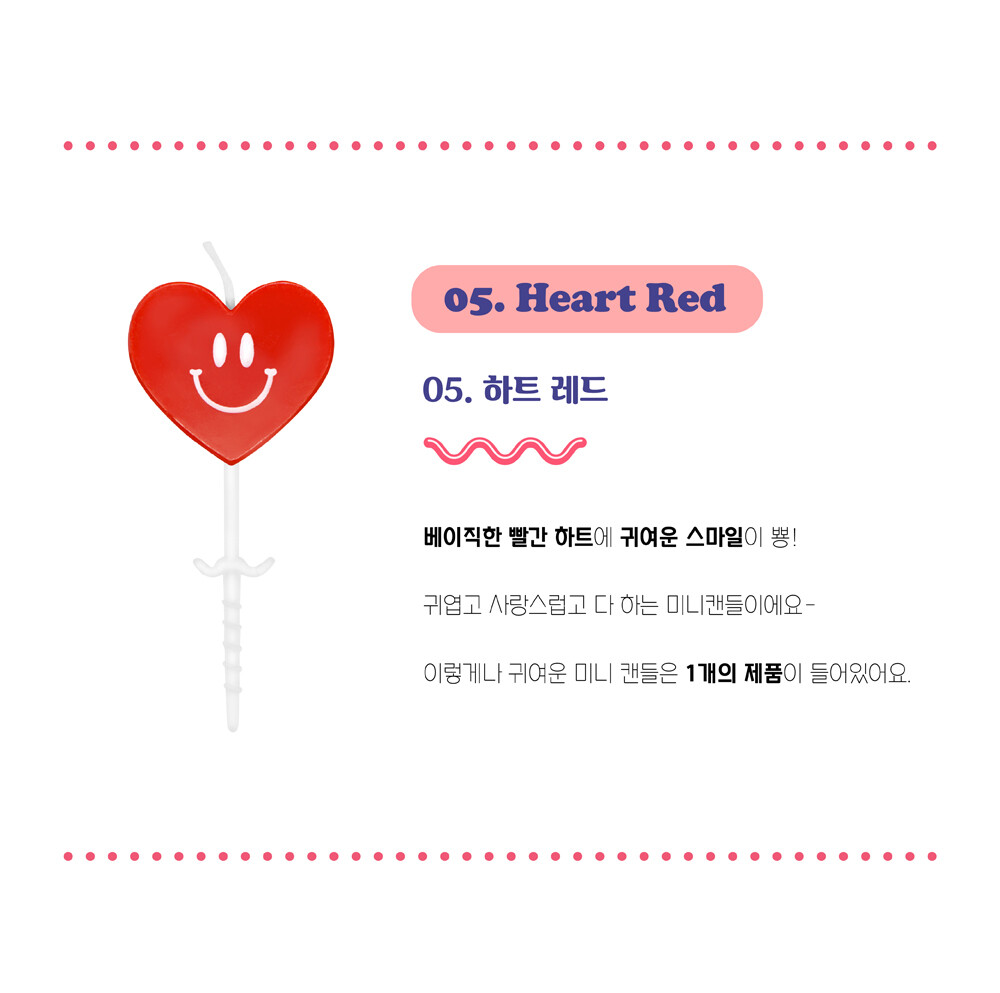 도매) 미니 뉴 스마일 캔들 - 하트레드