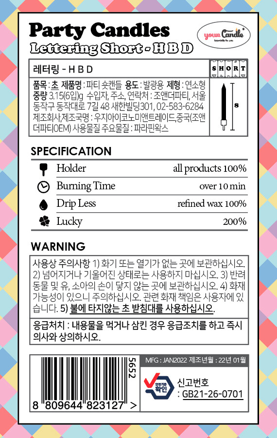 슬림 캔들선택하세요.레터링 HBD 3팩/세트(5%할인)