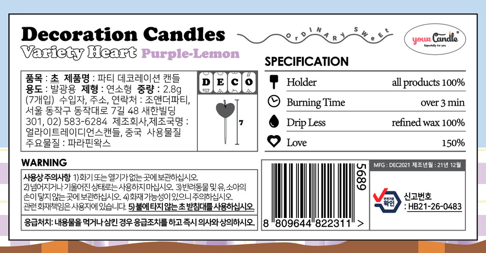 데코레이션 파티캔들 - 버라이어티 하트 퍼플레몬