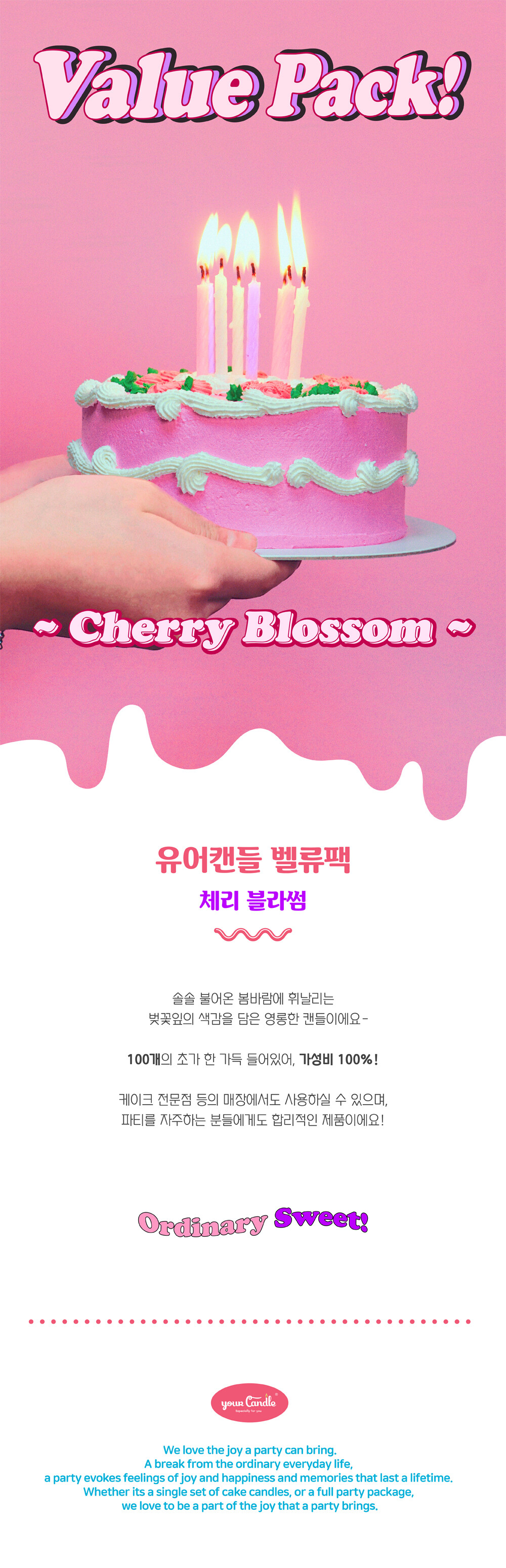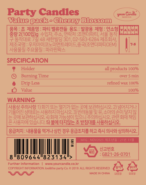벨류팩선택하세요.체리 블라썸 파티캔들 3팩/세트 (5% 할인)