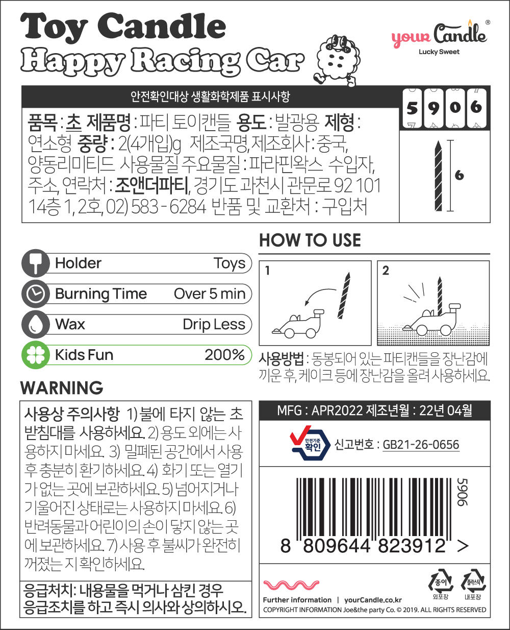 파티 토이 캔들 - 해피 레이싱카