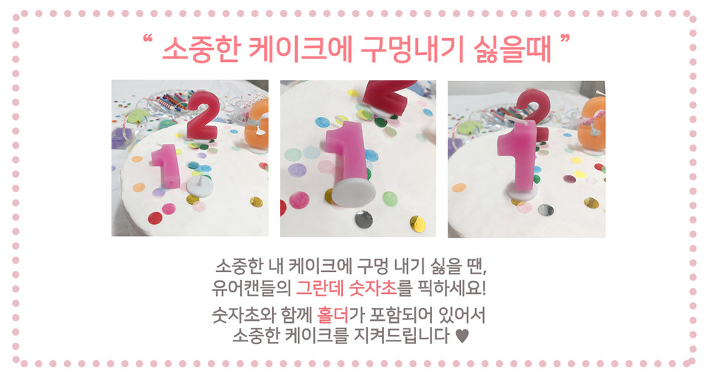 케이크에 포인트가 될 숫자초를 준비했어요!