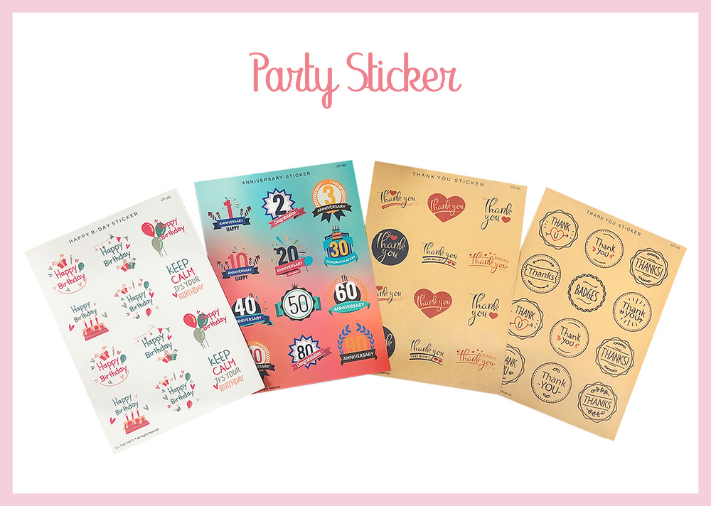 파티 스티커 4종 중 1매를 랜덤 발송해드립니다~!